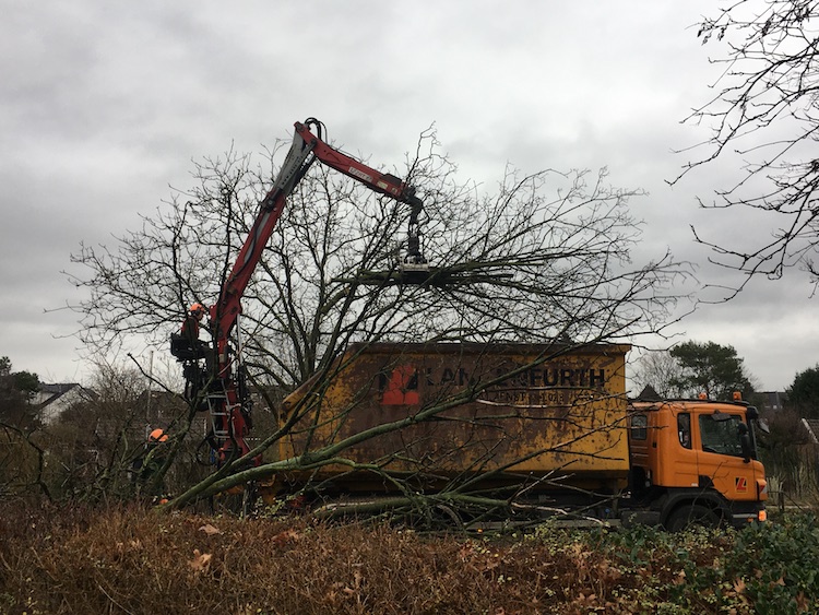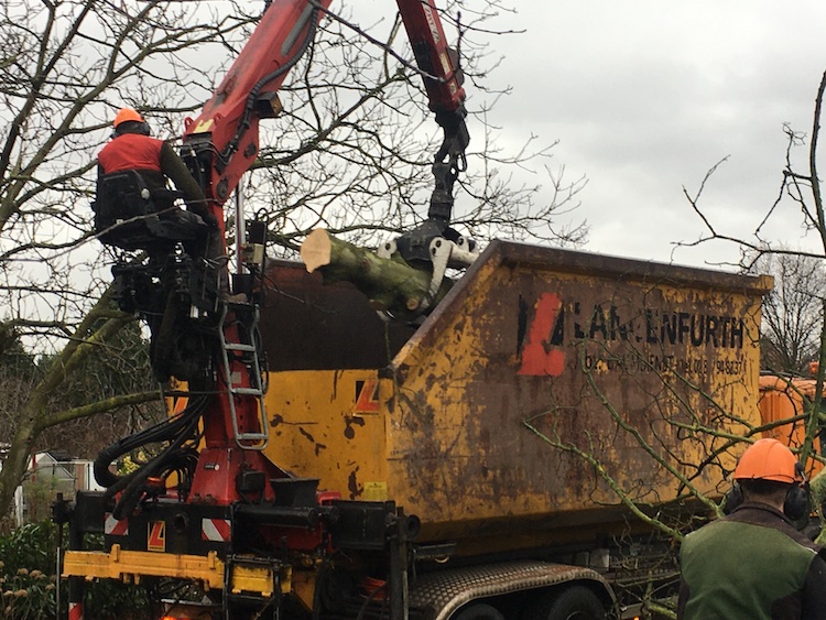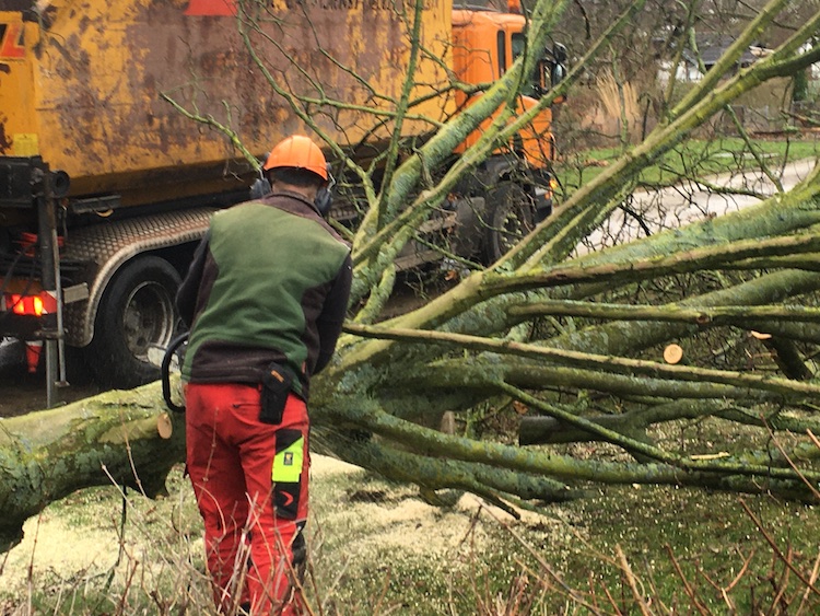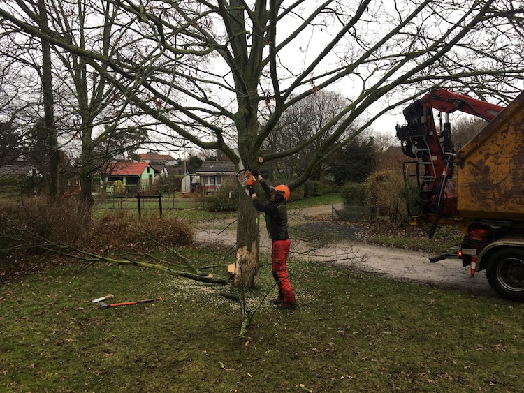 Es kommt nicht wahrscheinlich nicht so häufig vor, dass das Gartenamt innerhalb einer Kleingartenanlagen außerhalb einer Sturmsaison einen Bäum fällen muss. Am 27.01.2020 ist es in der Gartenanlage An der Piwipp dazu gekommen. Das Gartenamt kontrolliert rollierend die Bereiche, für dass das Gartenamt zuständig ist. Hierbei wird der Bewuchs von öffentlichen Grünstreifen inklusive der Bäume in Augenschein gekommen. Wenn notwendig, werden entsprechende Bäume / Bereiche optisch markiert. Die Daten werden durch das Gartenamt analysiert. Entsprechend der Gefährdung (z.B. bei kranken Bäumen) bestimmt das Gartenamt passende Maßnahmen. In unserem Fall, war der Baum verletzt und bereits mehrere Jahre diesen Verletzungen ausgesetzt. Das Gartenamt beauftragte die Fällung des Baumes. Es war im Grunde eine Sache von einer halben Stunde.